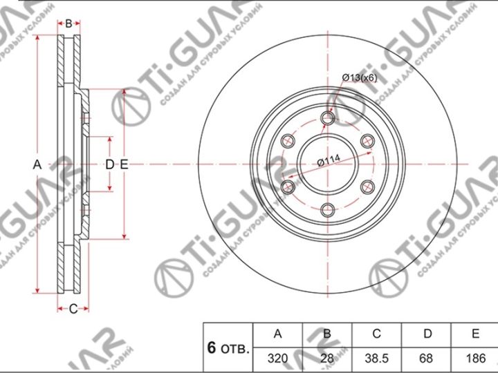 Диск тормозной /передний /TI-GUAR для Nissan Pathfinder R51 2005-, Navara D40 4WD 4.0 2.5DCi; 320/28мм; TG-40206-EB320 PD3212339S STTGBDP0029 0986479357 09B49610 24012802401