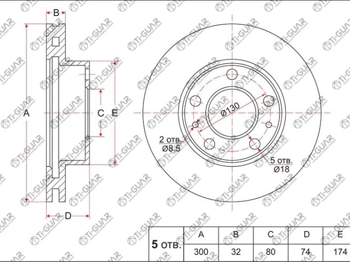 Диск тормозной /передний /TI-GUAR для FIAT DUCATO R16 2006-, CITROEN JUMPER 2006-, PEUGEOT BOXER 2006; 300/32мм; TG-4249A6 RN1928V 424938 51705758