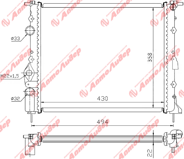 Радиатор охлаждения /AUTOLEADER для Renault Logan 2004-2008 Megane 1995-2002 Scenic 1996-2003 Clio Symbol 1.0 1.2 1.4 1.5D 1.6 1.9D /без крышки ; RN-LOG-1222; RN0002 7701352603 7700838134
