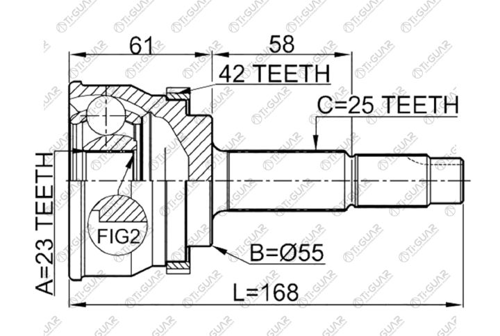 ШРУС наружный /передний правый /левый /TI-GUAR для Nissan Sunny Sentra FB15 1998- WINGROAD WHY11 VHNY11 WHNY11 4WD; 23*55*25; TG-7461Z42; (NI-E061A NI-061A42 CO5725A) 391014M570 NI61A42